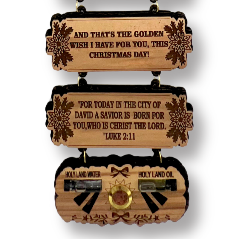 Introducing our “Christmas Blessing from the Holy Land” Wall Display, a beautiful and reverent piece of Christian art that celebrates the birth of our Lord Jesus Christ. This inspiring display brings the spirit of Christmas into your home, honoring the Nativity with timeless elegance and deep spiritual meaning.
